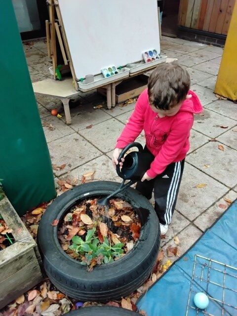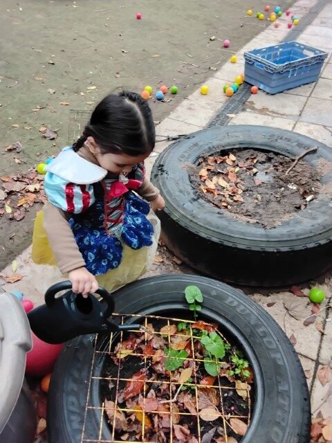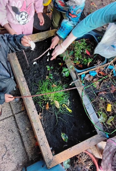 The children have enjoyed planting in our garden with Claudia from ‘The Children’s Kitchen’. They learned about the process of digging, planting, and watering as well as enjoyed the sensory experience of getting muddy and smelling the garlic bulbs.