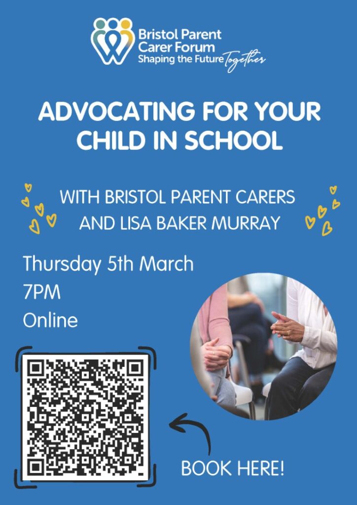 Booking is available at https://www.eventbrite.co.uk/e/advocating-for-your-child-in-school-tickets-1978628299507