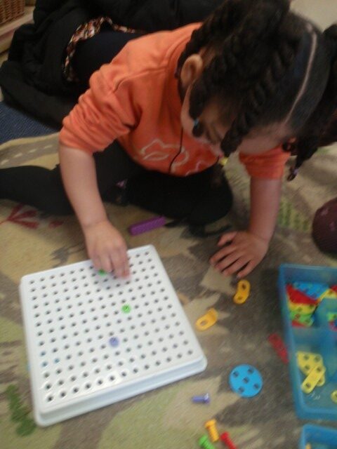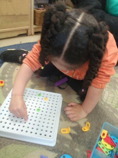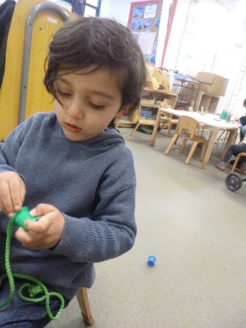 Fine motor development has been a big focus, with the children getting to grips with tweezers to move small loose parts, threading pasta onto pipe cleaners, and twisting and screwing nuts and bolts together. They have also been having a go at using scissors to make snips in paper, which takes real concentration and control. These activities are all fantastic preparation for writing and other skills the children will develop as they grow.