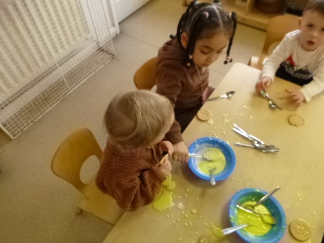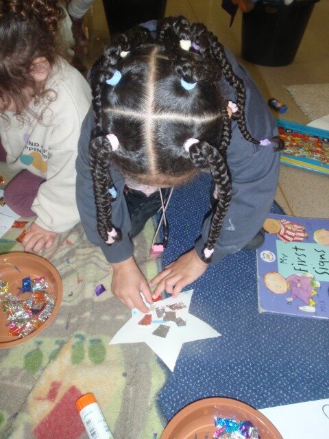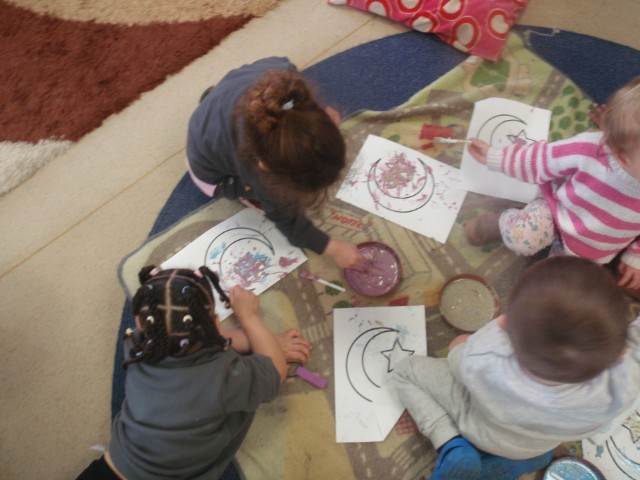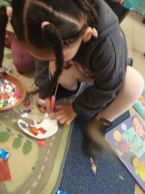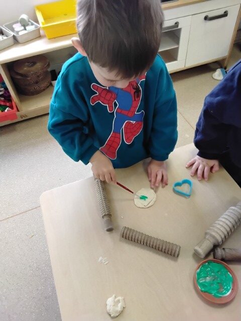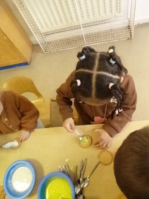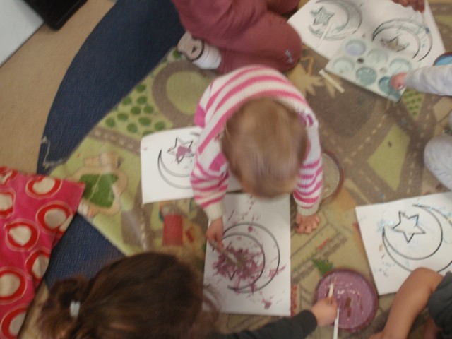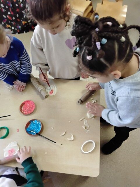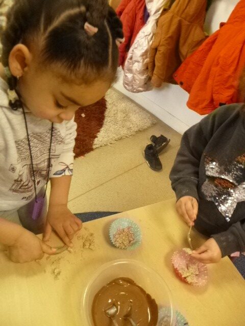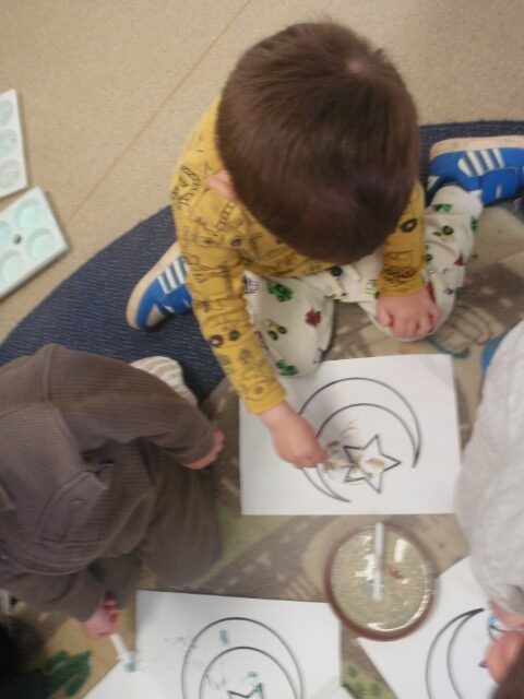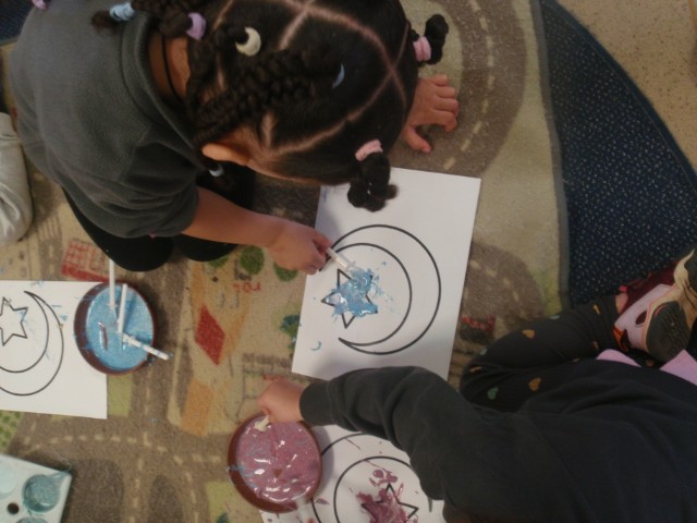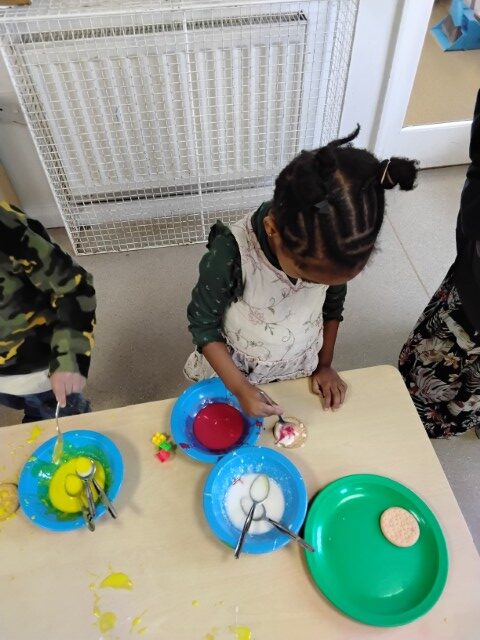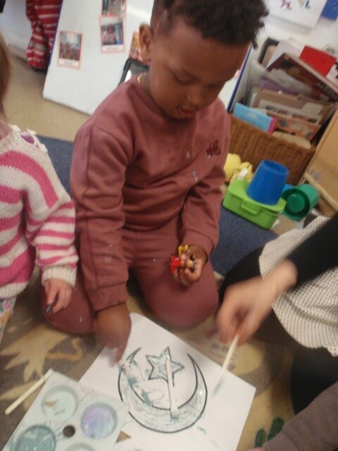 To celebrate Eid, the children have been creating beautiful decorations for the classroom using glitter glue with moon and star paper, bringing some real sparkle to the room. They have also been decorating biscuits with icing, drizzling, spreading and dotting to make them as colourful and yummy as possible! Alongside this, the children have been enjoying Eid lift-the-flap books, learning key words like gift, party, Eid and family as they explore the pages together.