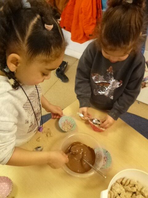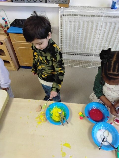 Easter and Spring have been just as exciting, with the children making their own chocolate Easter nests by crushing cereal and mixing it with melted chocolate, and creating their own Easter egg designs using tissue paper and glue. Spring and Easter books have been a lovely addition too, with the children getting to grips with key words including egg, Easter, chocolate and bunny.